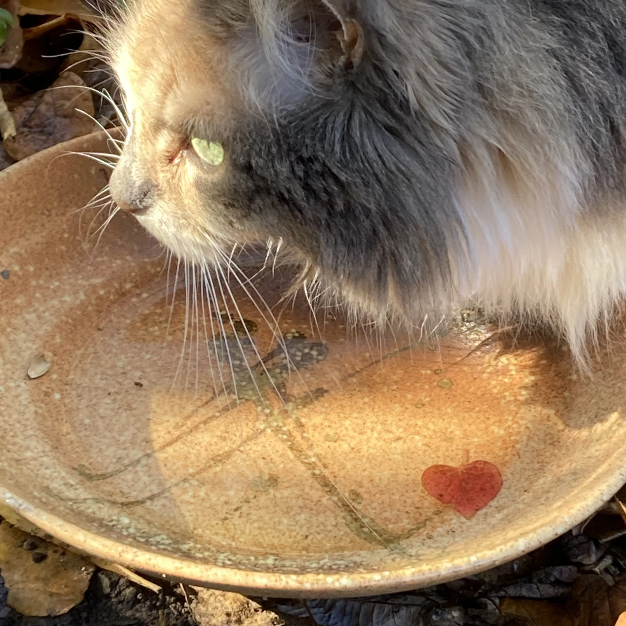 ♡ noticing… a single heart leaf landing in Roxy’s garden water bowl